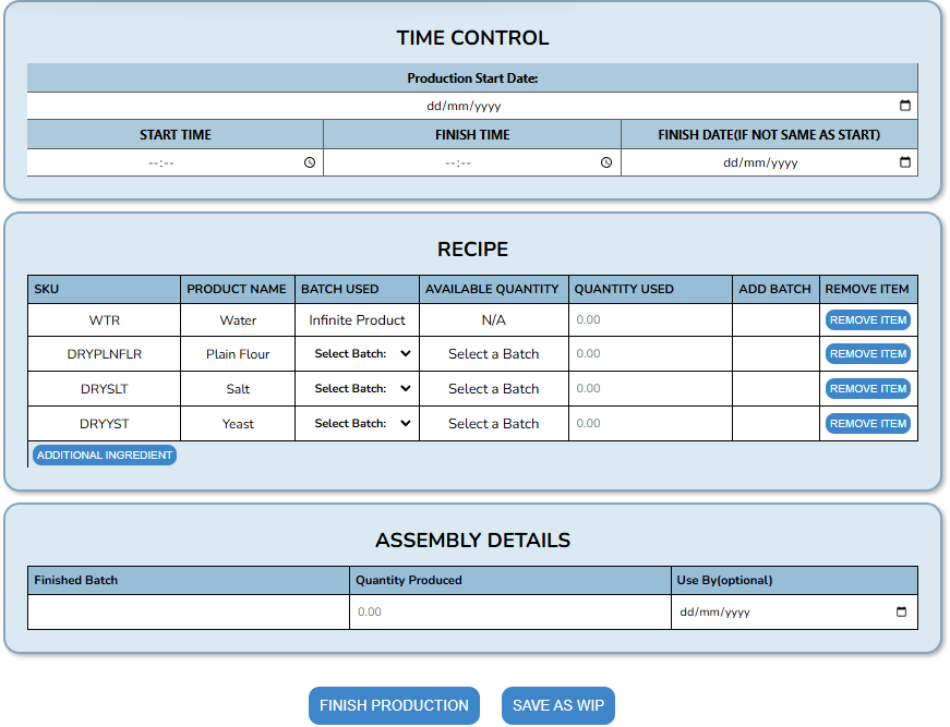 This module is currently in development and already offers limited functionality in the form of creating production flowcharts and automating risk assessments. It also enables the creation and management of prerequisites, control measures, and procedures, which can be attached to flowcharts or production processes.